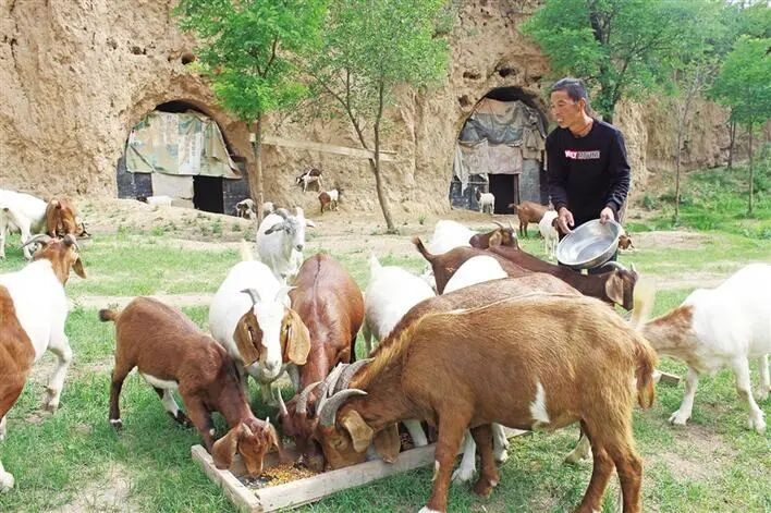 随着牛犊一天天健康成长,焦虎成家的院落显得有些狭小,他这才搬到离家7里外的赵家沟底。赵家沟曾是一个老林场,山大沟深、林木茂盛,蜿蜒流淌的泾河,成了永寿县和彬州市之间的界河。离河床10多米高处有块空场地,崖面有几孔破旧窑洞,早年是林场巡山人和伐木工劳作休息的场所。但这里因禁止采伐、护林扩绿,窑洞已废弃多年,焦虎成认准此处是“天然牧场”。2016年秋,夫妻二人与牛群一同落脚沟底,并扩大规模,养殖羊和猪等,其饲养方式为完全散养。养得久了,只要焦虎成吹个口哨,牛羊就会随音撒欢回“家”。
