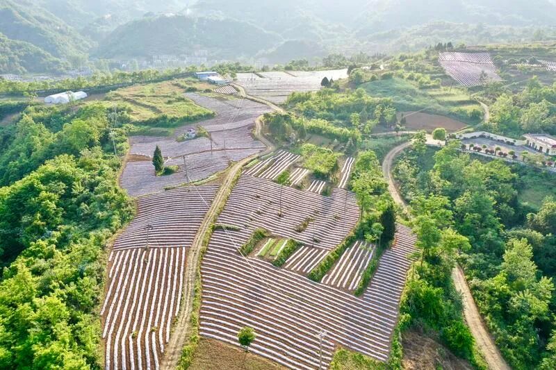 田成方、林成行、渠相通、路相连。盛夏时节,走进大竹园镇二联村东旭生态茶业基地,以特色茶庄为点,沿蒿坪河两岸硬化路为线,串起的万亩茶园正焕发出勃勃生机。